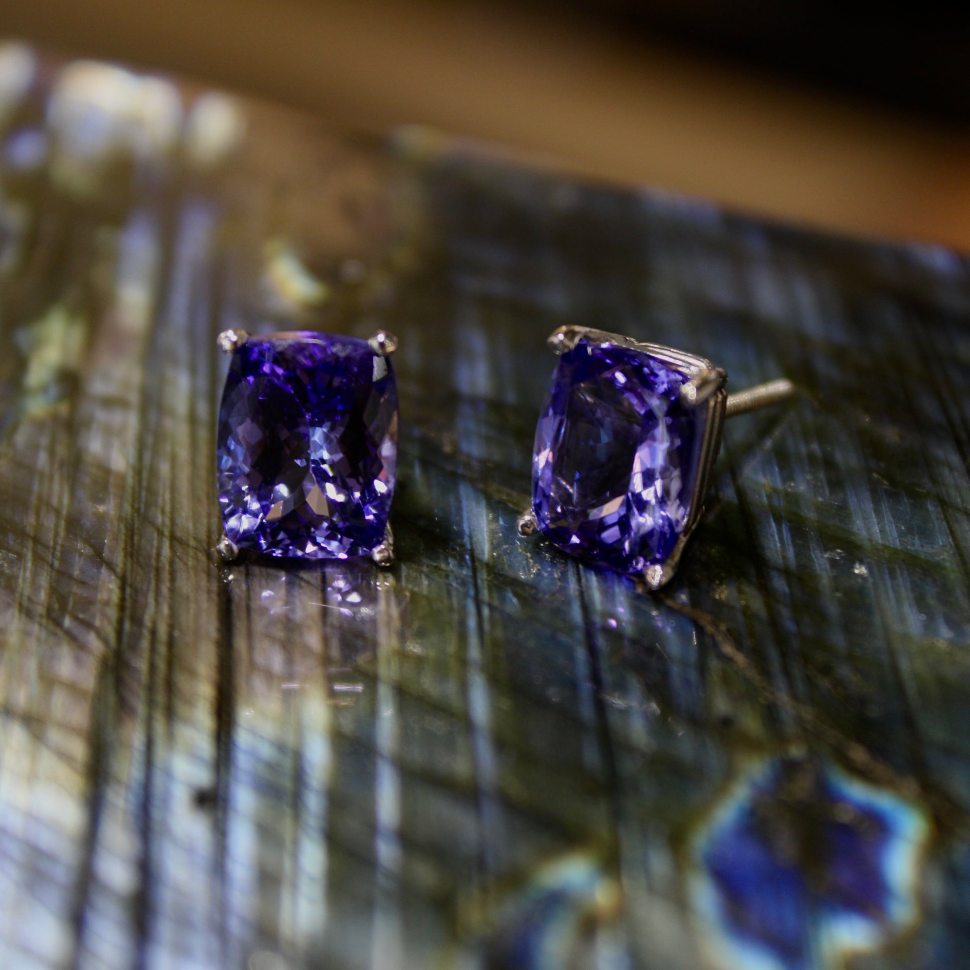 Cushion Cut Tanzanite Studs