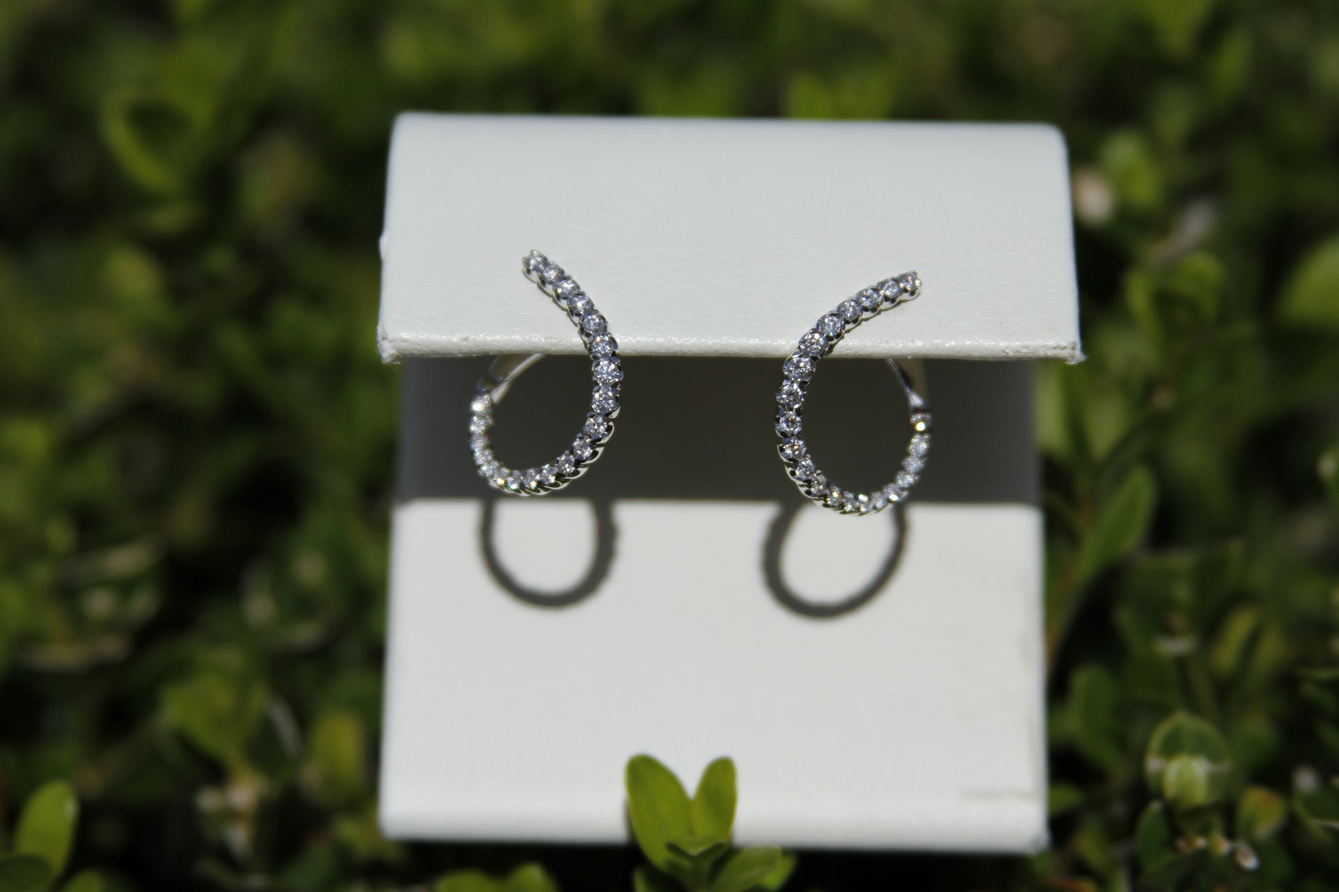 Add a sparkle to your day with these dazzling 0.50 CTW Diamond Aerial Hoops! Their one-of-a-kind, eye-catching design is ready to steal the show at any event. Made from shiny 14k white gold, these hoops are the perfect playful pop for any outfit. A fun and fabulous must-have for your jewelry box! Available to special order in yellow and rose gold!